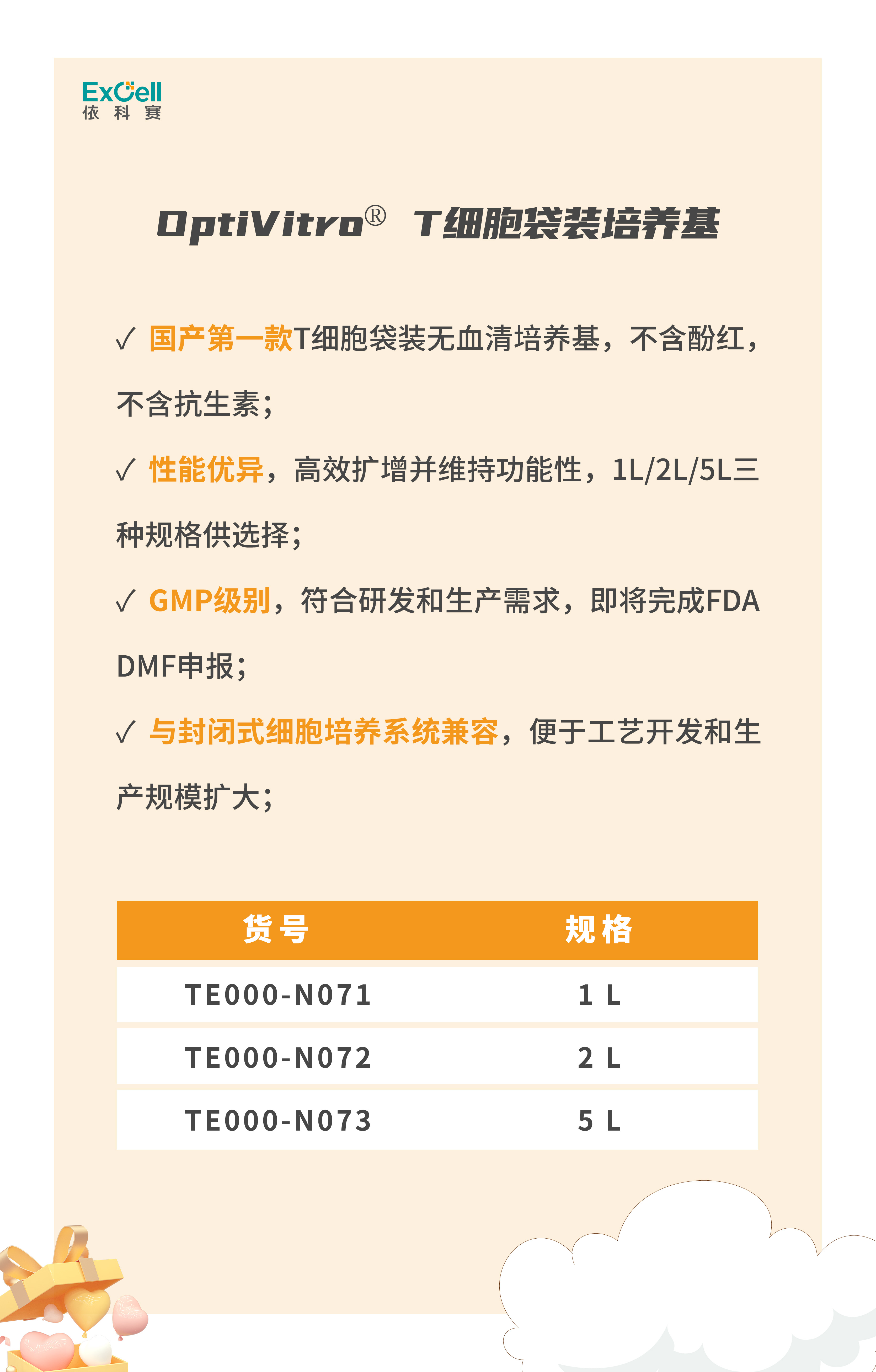 依科賽9月重磅推出T細胞袋裝無血清培養(yǎng)基,可以完美適配封閉式細胞培養(yǎng)方案。