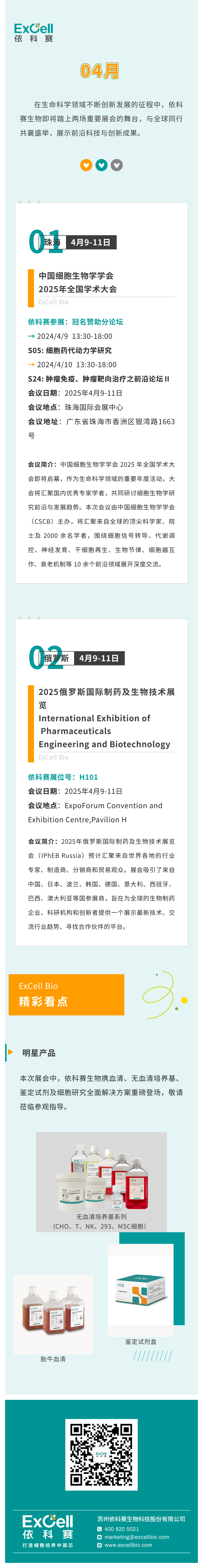 閃耀海內外 | 依科賽邀您參加2025細胞生物學大會和俄羅斯國際制藥及生物技術展覽