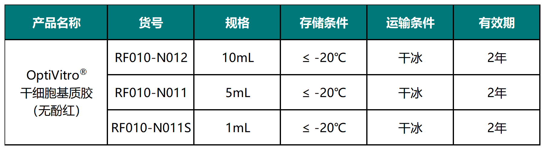 OptiVitro® 干細胞基質膠(無酚紅)是從表達多種膠原蛋白的 EHS 小鼠肉瘤中抽提出的可溶性基底膜基質,主要成分是層粘連蛋白(Laminin)、IV 型膠原蛋白(Col-IV)、硫酸乙酰肝素蛋白多糖(Heparansulphate)和巢蛋白(Entactin),同時也含有轉化生長因子β(TGF-β)、表皮生長因子(EGF)、類胰島素生長因子(IGF-1)、成纖維細胞生長因子(bFGF)等相關生長因子。OptiVitro® 干細胞基質膠(無酚紅)經功能驗證,可促進干細胞貼壁與增殖,維持干細胞多能性穩態,適用于 hESC、iPSC 的生長、分化及干細胞源性類器官的三維構建。本產品溶于無酚紅的高糖 DMEM 培養基中,含 50 μg/ml 慶大霉素。本產品經認證不含 LDEV。